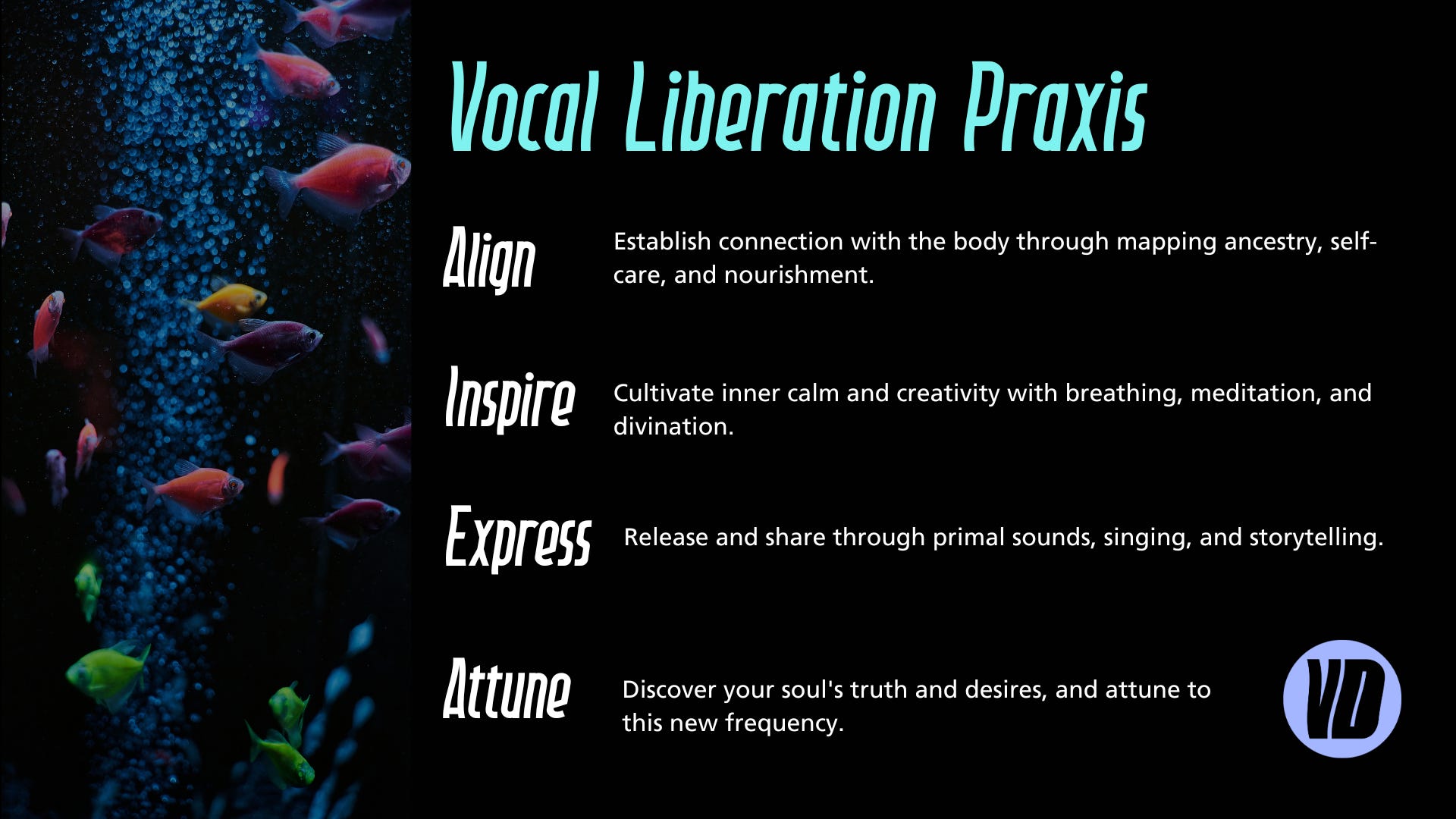 In all of my sessions, I am guided by my praxis for self-led vocal liberation that is based on four pillars: Align, Inspire, Express, and Attune. These pillars encompass my values as a vocal liberation doula because they focus on holistic care for vocal artists, rather than prioritizing classical vocal techniques and music reading fundamentals.